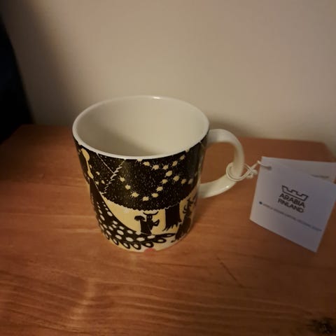 Myynnissä kuvan tuotannosta poistunut Arabian muumimuki Hurraa. Tätä muumimukia on yleensä tarjolla verkkokaupassamme tarrallisena ja/tai tarrattomana. HUOM! Kaikki tuotteet myydään verkkokauppamme kautta. Katso tuotteen hinta verkkokaupasta, linkki tämän ilmoituksen alaosassa. Tämän ilmoituksen tuotekuvat ovat kuvaamiamme esimerkkikuvia. Myynnissä olevan muumimukin tuotekuvat löydät verkkokauppamme tuotekuvauksesta.