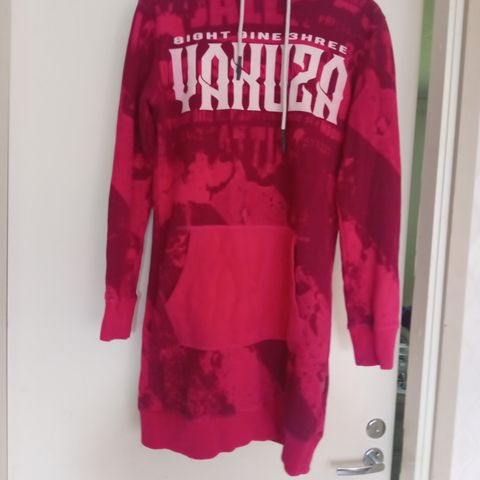 Käyttämättömäksi jäänyt pitkä huppari, koska on omaan makuun liian reilua kokoa. Menisi varmaan myös m-koolle. Kissatalous.