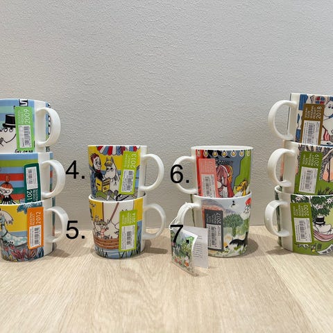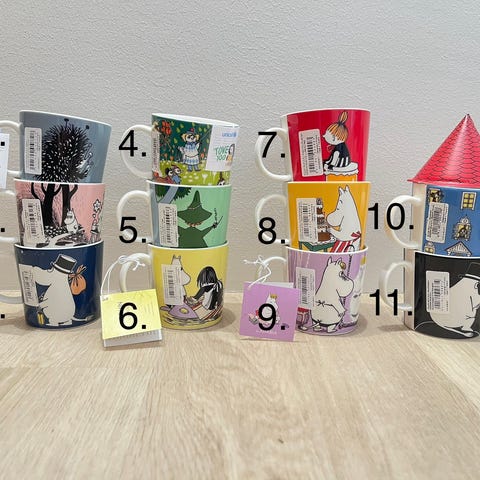 Uudenveroiset/käyttämättömät Muumimukit suoraan vitriinistä, joko yksittäin tai kaikki kerralla, mitat K8cm/H8cm. Voi myös tarjota, mikäli hinnat ei miellytä! Koko paketin ostajalle vielä reilu alennus yksittäishinnoista, eli 120 € pakettihinta.