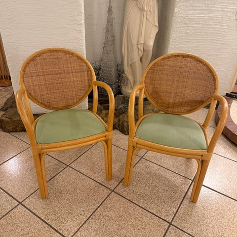 Rustiikkiset rottinki/puu tuolit
