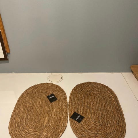 Uudenveroiset ruskeat satiinipöytätabletit. Koko 44,5x30cm.