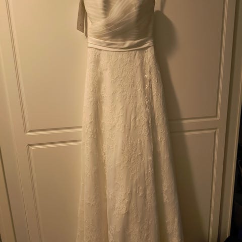 Myynnissä Enzoanin Journey- puku kokoa 36. Puku on kahdet häät juhlinut ja aikaisempi morsian oli lisännyt ompelijalla luut kylkiin istuvuuden parantamiseksi. Olen itse 164cm pitkä ja hääpäivänä oli korot jalassa.