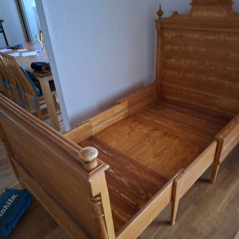 Siisti, tukeva sänky kauniit hieman muotoillut päädyt.