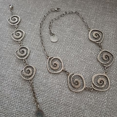 - kaulakoru, jossa 44 cm ketju (925) ja 5 x 20 mm riipus kolmella kivellä (OLL, 925)