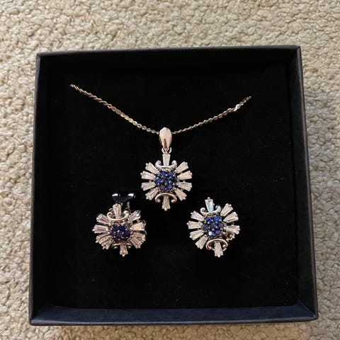 Korusetti sinisillä kivillä: kaulakoru, korvakorut & rannekoru