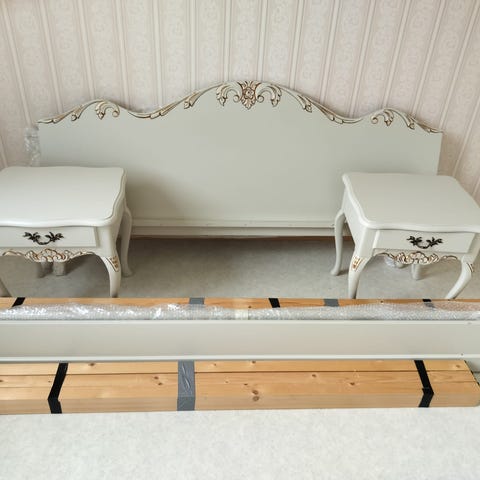Yöpöytä talonpoikaisrokokoo helmenharmaa