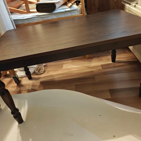 Petsilakattua jalopuuta, korkeus 56cm, kansi 60x110cm.