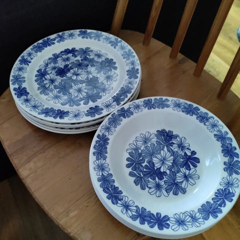 Arabian Hely -sarjan keittolautaset 20,5 cm. Olleet tuotannossa 1969-1973. Suunnittelija Olga Osol. Erittäin hyväkuntoiset. Vähän käytetty ja käsin pesty. Näitä on yhteensä 12 kpl. 15,- €/kpl tai 150,- €/12 kpl.