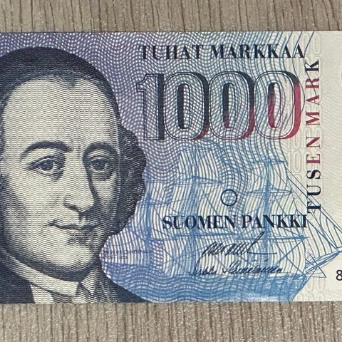 Viidenkymmenen markan seteli, erittäin siistikuntoinen.