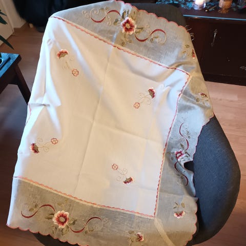 Valkoisia pöytäliinoja, Liinat kokoa 125 x122cm ,125 x106cm ,105 x102cm, 141 x141cm ,142 x142cm ja hinta 6e/kpl. 6 kpl lautasliinoja, koko 44 x 44cm 5e/kpl.