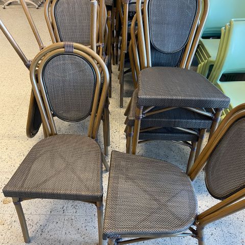 Hyväkuntoisia käytettyjä ravintolatuoleja ulkokäyttöön.