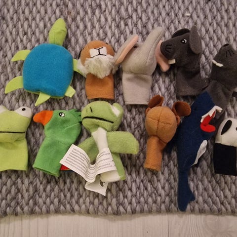 Tosi kivat sorminuket pientenkin lasten leikkeihin. 13 erilaista eläinhahmoa. Kissatalous.