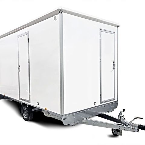 Siirrettävä työmaa- tai toimistovaunu valkoisella ulkokuorella