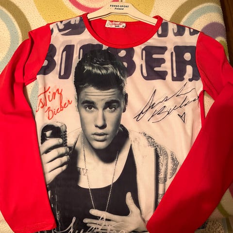 Justin Bieber T-paita, kokolappu leikattu pois, vastaa naisten kokoa xs.