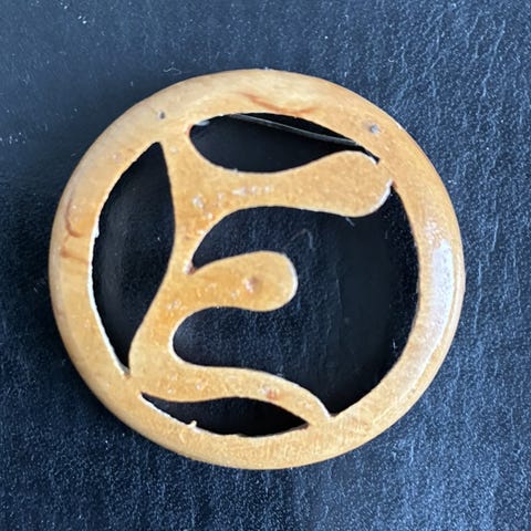 Käsin muotoiltu puinen puna-kulta-musta nuolimainen rintakoru