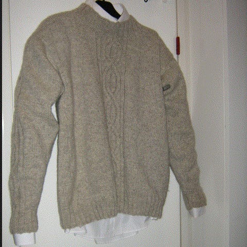 Miesten pehmeä neule, 100% polyakryyli. Ehjä, pääsiassa hyväkuntoinen, toki hiukan käytössä tullutta nyppyä kun tarkkaan etsii.