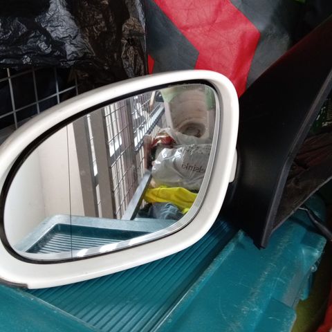 Tummanpunainen golffin sivupeili, täysin ehjä. Voin postittaaa