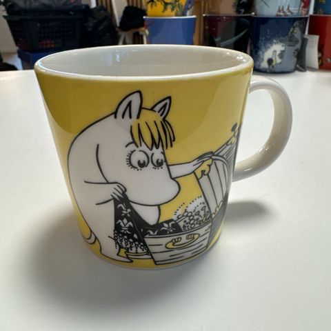 Uusi, käyttämätön muumimuki-niiskuneiti keltainen 2001-2012. Ollut vitriinissä.