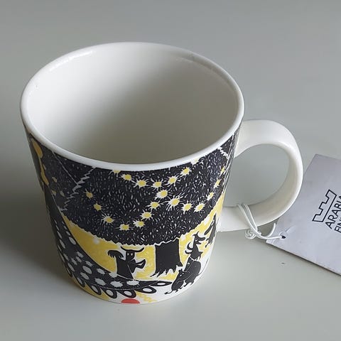 Uusi, käyttämätön, lapulla muumimuki-hurraa! 2012. Ollut vitriinissä.
