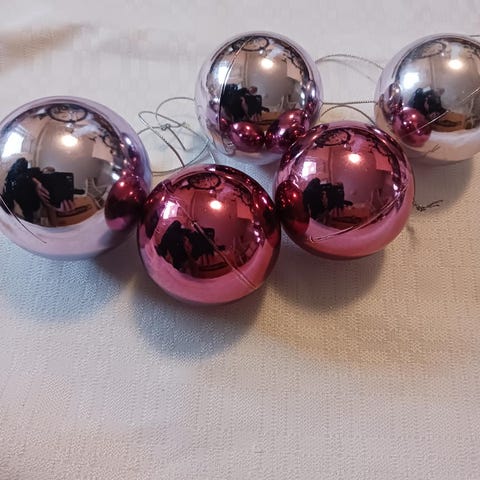 Joulukuusen pallot, 4 kpl, punaiset kiiltävä ja matta. Halkaisija 8,3 cm