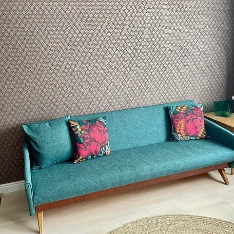 Vintage vuodesohva, saa levitettyä sängyksi. Sohvan pituus 196cm, leveys 75cm Levitysosa 60cm. Leveys 135cm levitettynä. Mukaan myös sängyn aluslaatikko 78cm leveä. Nouto Turun Kastusta.