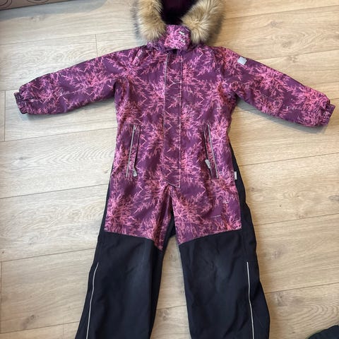 Reimatec talvihaalari 116 cm. Uutena ostettu, mutta polvista jo kuluneet. Kuvissa näkyy paikkakin on jo lähes irti, mutta muuten ehjät. Myydään noudettuna.