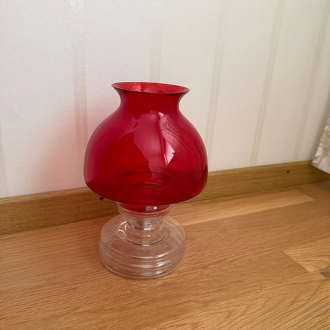 Riihimäen lasin punainen Apollo kynttilälyhty