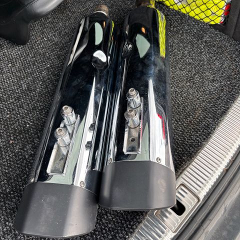 Vähän ajetut CVO:n alkuperäisten vaimentimien väriset vaimentimet. Myyn koska laitoin samanlaisen kokoputkiston. Mukana hiljaiset sisähuilut, jotka piti tilata erikseen ja nekin maksoivat n. 100 Eur. Minulla on myös käyrät race-katilla tähän ja voisi katsoa yhteishintaa.