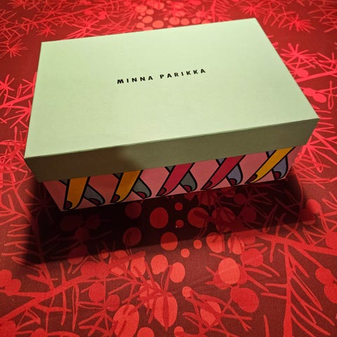 Kokoa 38 olevat punaiset Minna Parikan nappanahkaiset vähän käytetyt Jodie korkkarit. Dust bag ja laatikko mukaan.