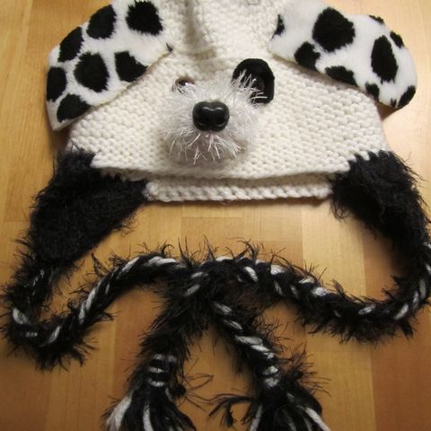 valkoinen koirahattu, Dalmatialais, py.n.50-56 cm, käsityötä, suloinen ja hauska