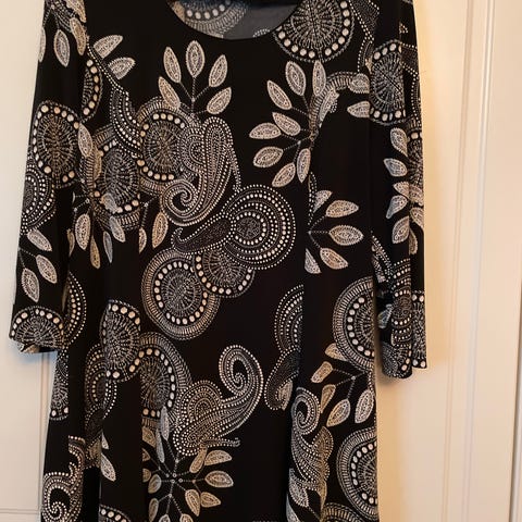 Uusi Modelian tunika, kauniisti laskeutuvamalli. Laihtumisen vuoksi onkin nyt minulle liian iso, joten siksi myynnissä. Ostohintalappu 169 e edelleen kiinni vaatteessa.