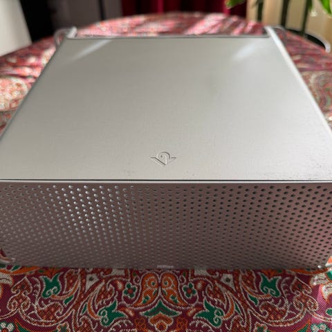 Etulevy on ollut pikaliimattuna kiinni, mutta nyt irroitettu. Pähkinäpuupinta ei ole enää esteettisesti katselukelpoinen, mutta onhan toi alumiini nyt paljon hienompi. Magneettikiinnitys edelleen toimiva. Asia huomioitu myyntihinnassa.