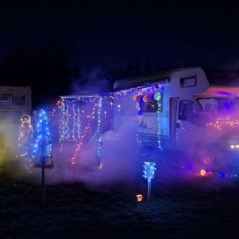 Kaukosäätimestä ohjataan sekä konetta että valoa. Valon saa mm. välkkymään musiikin tahtiin.