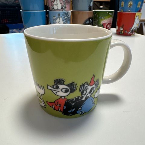 Uusi, käyttämätön muumimuki-tiuhti ja viuhti 2005-2017. Ollut vitriinissä.