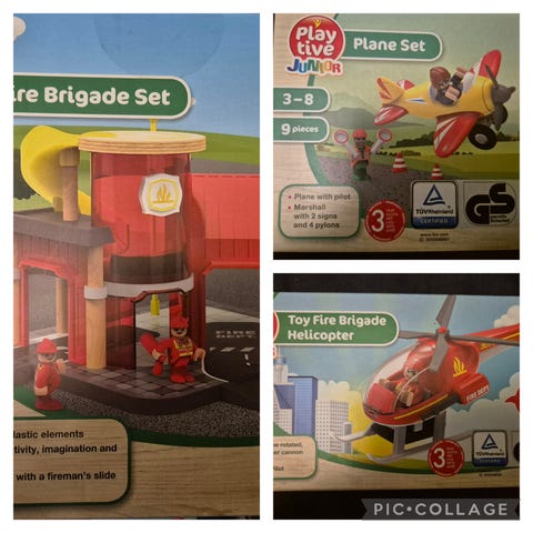 Avaamattomat pakkaukset vaikka lahjaksi. Playtive Fire engine paloauto 270 palaa ja Police helicopter poliisihelikopteri 390 palaa.