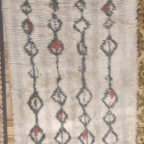 Ryijy ” metsästäjät” , koko noin 178x130 cm plus hapsut . Ehjä mutta pölyinen .