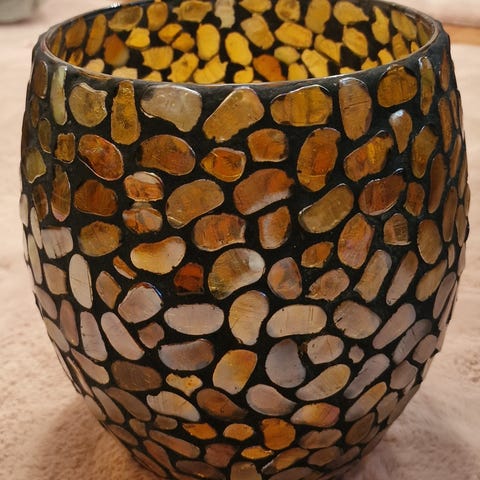 Partylite Yönhämäryys -hurricane, eläväpintaista lasia, metallialusta ja yleiskäyttöinen teline.