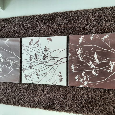 Perhosteemaiset kohokuviotaulut, 2 kappaletta. Molemmissa tauluissa on vaalealla pohjalla kohokuvioitu kukka- ja perhosaihe. Väri on valkoinen ja sävyt vaaleita, mikä sopii neutraaliin sisustukseen. Taulut on tarkoitettu seinälle ripustettaviksi sisustuselementeiksi esimerkiksi olohuoneeseen, makuuhuoneeseen,eteiseen tai lasten huoneeseen.