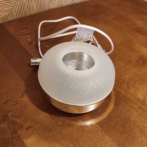 Tuoksulle oma lasi valaisimen päällä.