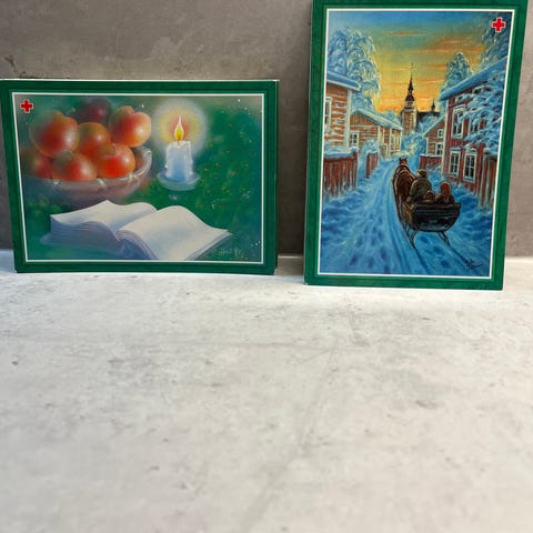 Joulupuurokortteja 2 kpl, joulukirkko 7 kpl