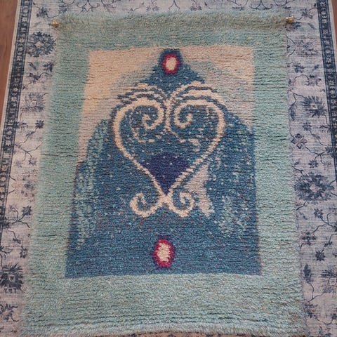 Käsitöinä tehty ryijy. Kellertävän rusehtava seinävaate, joka on valmistettu ennen 1970v. Hinnassa neuvotteluvaraa ja pelkkä nouto!