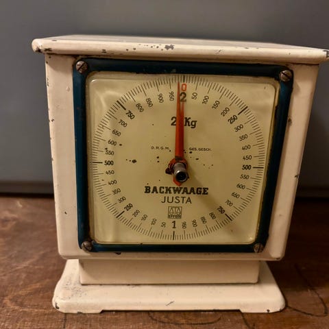 Ikäisekseen hienokuntoinen vanha jugend-vaaka. 1900-luvun alkupuolelta.
