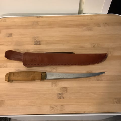 Marttiini Kalakätevä on nimensä mukaisesti näppärä työkalu kalojen perkaamiseen. Kaarevalla terällä kalan avaaminen on helppoa ja hammastuksella suomustaminen käy kätevästi. Kahvan päässä olevalla metallilusikalla sisälmysten poistaminen on siistiä ja nopeaa.