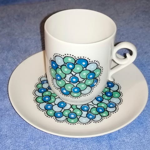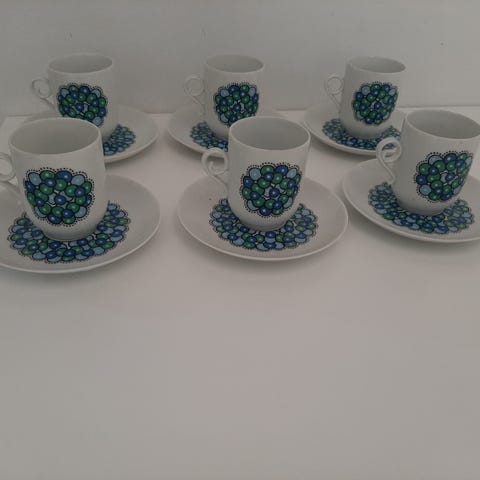Myydään hienossa kunnossa olevat Arabian Marina-kahvikupit. Näitä on tuskin montaa kertaa käytetty, ei käytön jälkiä. Täysin ehjät, ei mitään rikkoja.