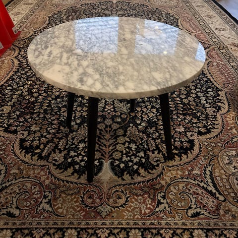 Todella kaunis vanha, vintage marmoripöytä (sohvapöytä, sivupöytä). Kaunis musta ja vahva (paksu) marmori. Kaksi marmorilevyä.