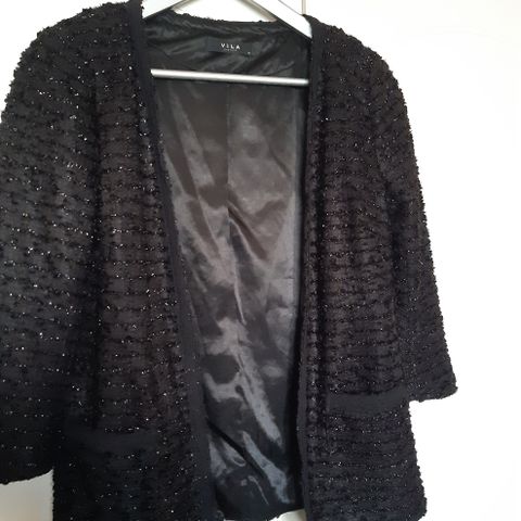 Myydään pari kertaa käytetty Reserved kimalteinen musta jakku koossa M. Pienet olkatoppaukset. Eläimetön talous. Nouto Vantaanlaaksosta, kulkeutuu Lohjalle. Postitus postikuluja vastaan.