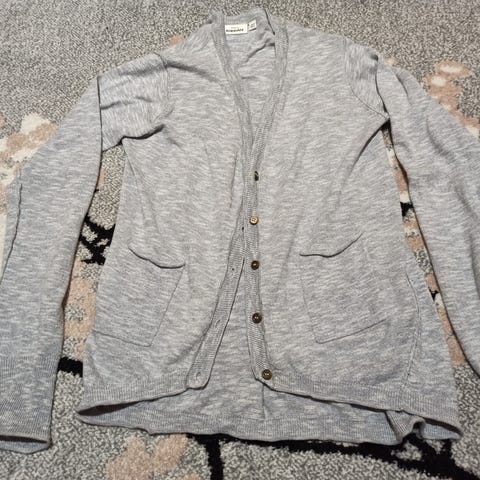 Myydään kuvan hieman kimaltava musta-hopea neuletakki. Koko 158. Kainalo-kainalo n. 39 cm ja olka-helma n. 55 cm. Kiinnitys yhdellä napilla. Neule on ollut käytössä yhdellä tytöllä. Meillä ei polteta eikä meillä ole lemmikkejä. Postitus ostajan kustannuksella 7,90 eur