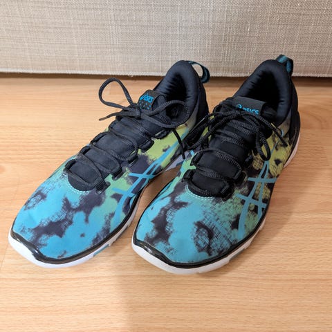 Naisten Asics sisäurheilukengät, koko 39,5. Vähän käyteyt, mutta kummankin kengän kärjessä on pieni kosmeettinen pintavika.