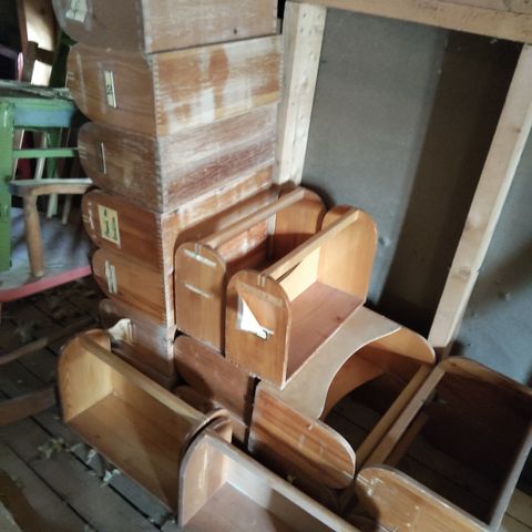 Puuosaston valmistamia erilaisia vanerilaatikoita.