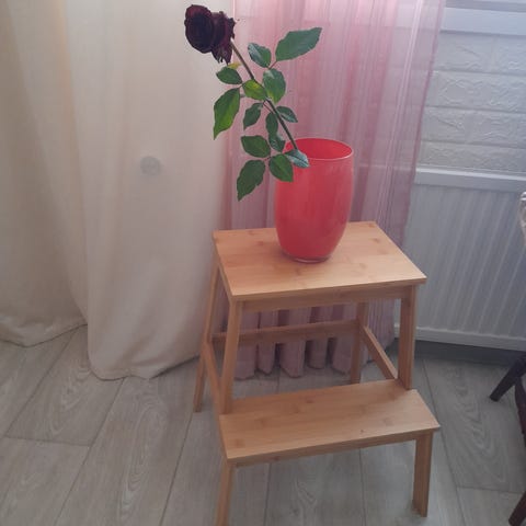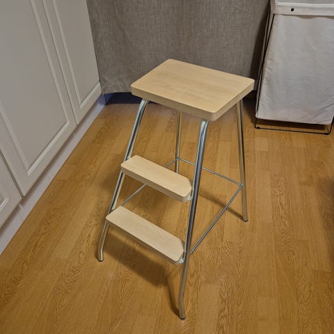 Puuosastomme valmistama porrasjakkara Nousukas. Mitat kuvassa.